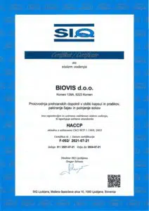 L’azienda Biostile d.o.o. ha implementato e mantiene i requisiti per il sistema di gestione della qualità in conformità alla norma ISO 9001:2015, come dimostrato dal certificato SiQ Ljubljana n. Q-2350, e i requisiti per il sistema di gestione ambientale in conformità alla norma ISO 14001:2015, come dimostrato dal certificato SiQ Ljubljana n. E-677.